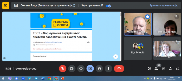Вебсемінар-практикум «Формування внутрішньої системи забезпечення якості освіти» (5 фото) Дата публікації: 2023-11-01
