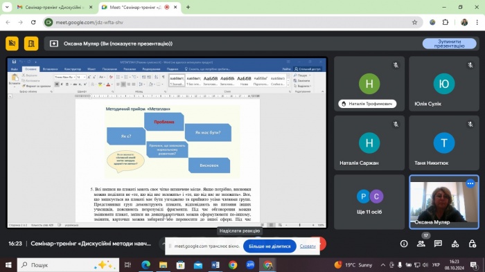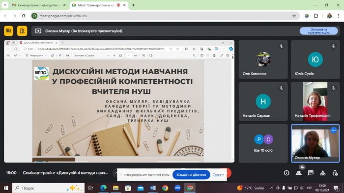 Семінар-тренінг «Дискусійні методи навчання в освітньому процесі НУШ» (3 фото) Дата публікації: 2024-10-11