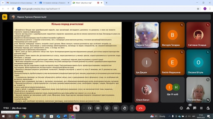 Семінар-практикум «Психологічні умови благополуччя всіх учасників інклюзивної освіти» (4 фото) Дата публікації: 2025-05-08