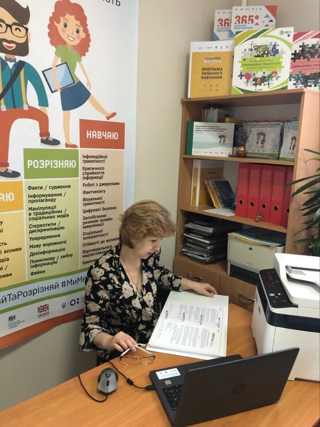 Долучившись до проектів, організованих Міністерством освіти і науки України спільно з Академією Української Преси за підтримки USAID, Internews та DW (учасники Літніх шкіл з питань формування медіаграмотності (Київ-2015 р. та Шацьк (Волинська обл.) — 2018 р.); П’ятої, шостої, сьомої міжнародних науково-методичних конференцій м. Київ, 2017 — 2019 рр.: «Практична медіаграмотність: міжнародний досвід та українські перспективи» (2017 р.) «Національна розмова: розвиток медіаграмотності в Україні» (2018 р.); «Сучасний простір медіаграмотності та перспективи його розвитку» (2019 р.). Участь у тренінгу для тренерів з медіаграмотності (5-7 грудня 2019 р., м. Тернопіль). Опрацьовано онлайн курс «Фактчек: довіряй — перевіряй» (15 год.), ED ERA, VOX UKRAINE (грудень 2018; жовтень 2019).