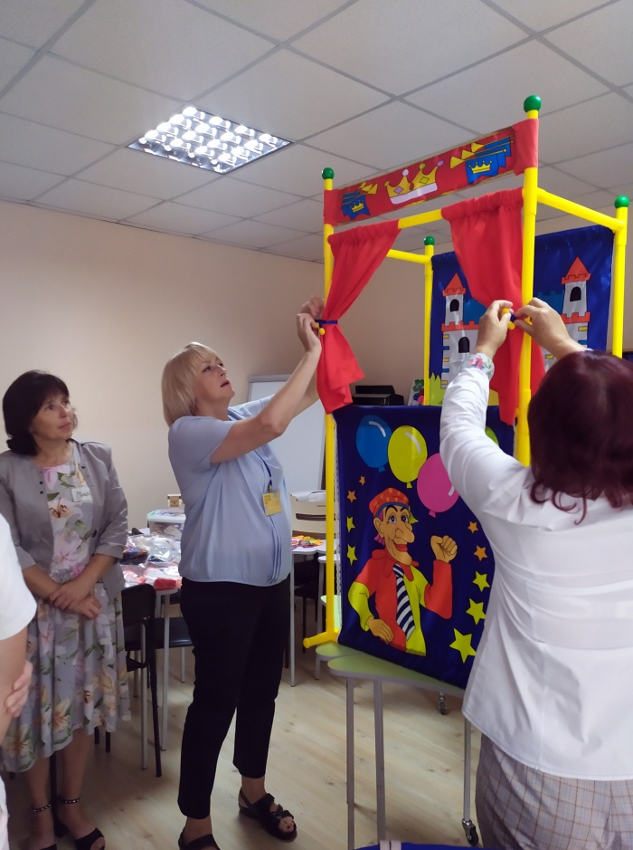 Наприкінці роботи учасники отримали методичні та практичні матеріали (сцени, набори ляльок, набори конструкторів, музичні інструменти) для розвитку творчості дітей з особливими освітніми потребами з метою подальшого використання у своїй практичній діяльності.