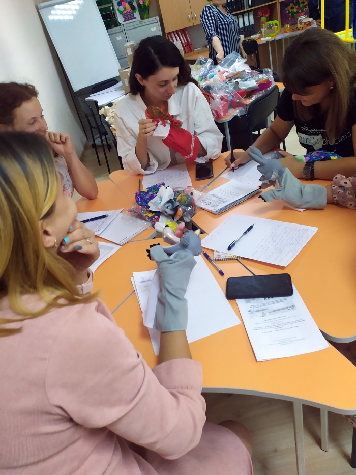 На занятті фахівці ознайомилися з 4 практичними кейсами : Кейс № 1 - «Ляльковий театр» полягає у формуванні навичок у фахівців ІРЦ писати сценарії та ставити вистави разом з дітьми які з певних причин обмежені фізичними і психічними вадами. Використання таких навичок у корекційно- реабілітаційній роботі буде розвивати у дітей задатки до перформативного та сценічного мистецтва. Кейс № 2 - «Сцена для лялькового театру» полягає у формуванні навичок у фахівців ІРЦ, використовуючи різні матеріали, самостійно і залучаючи дітей з особливими потребами та їх батьків, створювати сцени відповідно до тематики вистави і забезпечити розвиток у дітей творчих здібностей до дизайну інтер’єрів. Кейс № 3 - «Коник - каталка» полягає у формуванні навичок у фахівців ІРЦ складати з екологічного матеріалу - картону багатофункціональні іграшки, розмальовувати їх у різні кольори, наносити елементи декору разом з дітьми. Такі вправи розвивають у дітей задатки до живопису, конструювання.