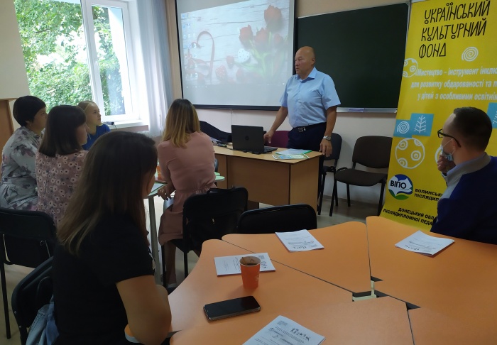 У межах грантового проєкту «Мистецтво - інструмент інклюзивного навчання для розвитку обдарованості та пізнавальної сфери у дітей з особливими освітніми потребами» за підтримки Українського культурного фонду 19 серпня 2021 року на базі Волинського ІППО відбувся третій запланований захід «work shop» для 12 спеціалістів ІРЦ області.