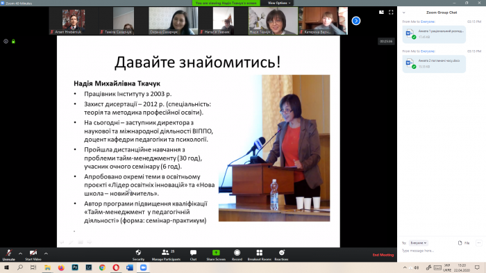 У ході півторагодинної сесії було використано не лише засоби відеозв’язку, а й заповнення електронних анкет. Учасники прийшли до спільного рішення і надалі продовжувати дистанційні заходи в подібному форматі.