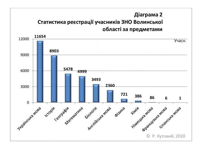 Окрім обов’язкової для випускників української мови і літератури, серед предметів ЗНО у волинян найбільш популярними були історія України, географія, математика.