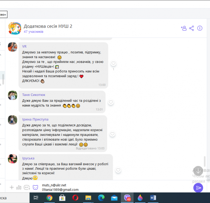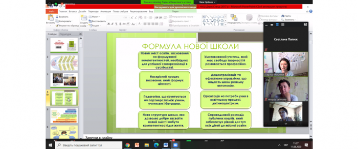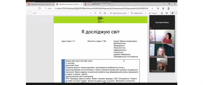 Заняття зі слухачами, а їх згідно з реєстрацією було 100 (3 групи), проводили тренери Никитюк Л. М., Папіж С. В., Романюк С. В., Поліщук Н. А., Довгополюк Н. С. Під час навчання реалізовано зміст Типової освітньої програми підвищення кваліфікації педагогічних працівників і опрацьовано 10 навчальних модулів, зокрема: