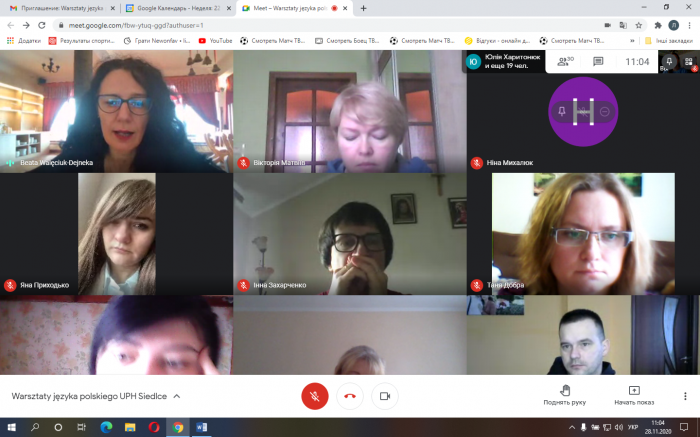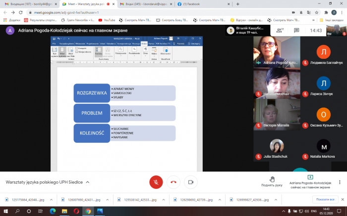 І на завершення курсу з групою працювала пані професор Адріана Погода-Коледзеяк (Adriana Pogoda-Kołodziejak). Учителі мали хорошу нагоду удосконалити свої фонетичні навички, відпрацювати вимову складних звуків. А також детально розглянули етапи формування навичок вимови в учнів, адже фонетика має важливе практичне значення особливо під час вивчення іноземних мов. Порівняння фонетичної будови рідної мови, як опори навчання, з фонетичною будовою виучуваної мови дозволяє послідовно здійснювати принцип свідомості у вивченні мови.