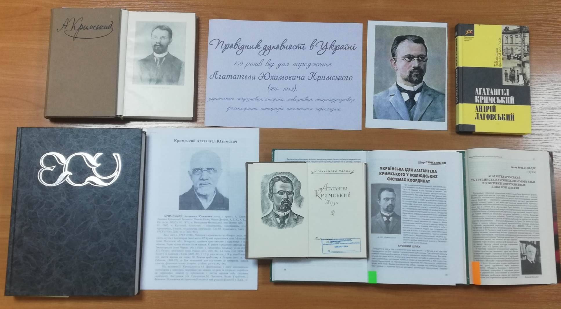 В бібліотеці розгорнуто виставку книг «Провідник духовності в Україні» до 150 років від дня народження Агатангела Юхимовича Кримського (1871- 1942), українського сходознавця, історика, мовознавця, літературознавця, фольклориста, етнографа, письменника, перекладача, а також віртуальну виставку на сторінці бібліотеки: Провідник духовності в Україні (Агатангел Юхимович Кримський)