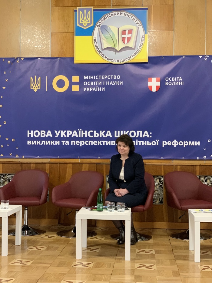 Начальник управління освіти Луцької міської ради Лещенко Зіновія Богданівна та директор комунальної установи «Центр професійного розвитку педагогічних працівників» Любешівської селищної ради Радкевич Людмила Анатоліївна поділились з присутніми досвідом проведення місцевих етапів Виставки. Завідувач відділу новацій та передових педагогічних технологій ВІППО Шинкарук Ірина Вікторівна коротко охарактеризувала матеріали, подані до участі в номінації «Методична робота». Продовжили знайомство з матеріалами Виставки методисти ВІППО: Никитюк Лариса Мілетіївна — «Початкове навчання», Олевська Ірина Ігорівна — «Історія», «Правознавство», «Громадянська освіта», Сагайко Володимир Сергійович — «Основи здоров’я», «Фізична культура», Гісь Ігор Володимирович — «Інформатика». Також ознайомитись з поданими матеріалами можна було, оглянувши експозицію, де працювали: Рудь Оксана Володимирівна, старший викладач кафедри менеджменту освіти, — «Предмети духовно-морального спрямування», Корнейко Микола Миколайович, методист відділу виховної роботи, — «Предмет «Захист України», Гребенюк Тетяна Семенівна, методист відділу природничих дисциплін, — «Економіка та фінансова грамотність», Варемчук Василь Ярославович, методист відділу фізико-математичних дисциплін, — «Трудове навчання».