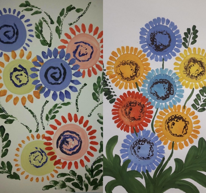- штампування картоном; штампування пінопластом; малюнок по розмитому фломастеру (кер. Янчук О. А.);