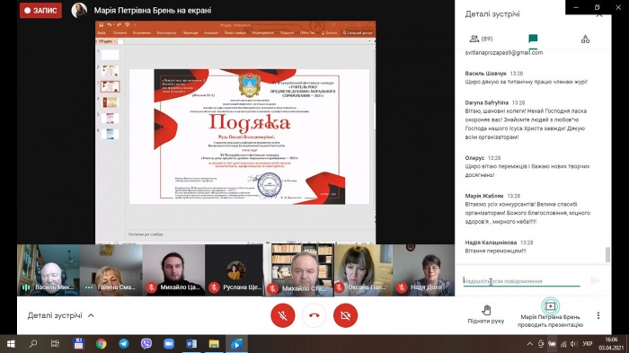 42 учасники із 24 областей України успішно виконали конкурсні завдання і презентували фахову майстерність викладання курсів духовно-морального спрямування, спілкувалися у онлайн-форматі. Конкурсна програма фестивалю складалася з тесту на знання Біблії; презентації фрагменту уроку (заняття). У складі журі та оргкомітету всеукраїнського етапу фестивалю-конкурсу «Учитель року предметів духовно-морального спрямування» працювали науково-педагогічні працівники кафедри менеджменту освіти Волинського ІППО - завідувач кафедри, кандидат фізико-математичних наук, доцент М. О. Сташенко та старший викладач О. В. Рудь. Серед учасників всеукраїнського етапу - волинські педагоги: переможець ІІ (обласного) туру всеукраїнського конкурсу «Учитель року - 2020 з предметів духовно-морального спрямування», вчитель загальноосвітньої школи І-ІІ ступеня села Хорлупи Ківерцівського району Щербачук Руслана Михайлівна (Наказ управління освіти, науки та молоді облдержадміністрації від 24.01.2020 р. № 31) та вчитель Ківерцівської експериментальної Всеукраїнського рівня загальноосвітньої школи-комплексу І-ІІІ ступенів Ківерцівської міської ради Волинської області Шевчук Василь Ярославович, лауреат ІІ (обласного) туру всеукраїнського конкурсу «Учитель року - 2021 з предметів духовно-морального спрямування», що проходив 26 березня 2021 року у Волинському ІППО (Наказ управління освіти і науки облдержадміністрації від 09.03.2021 р. № 69).