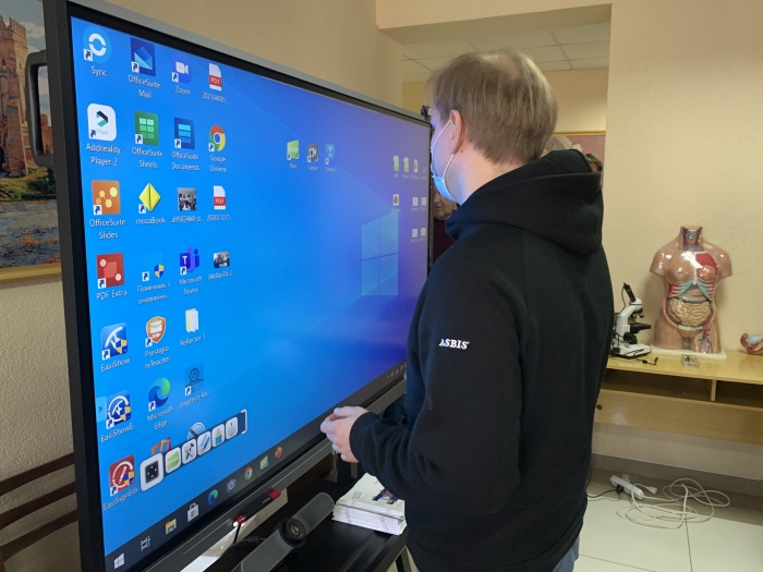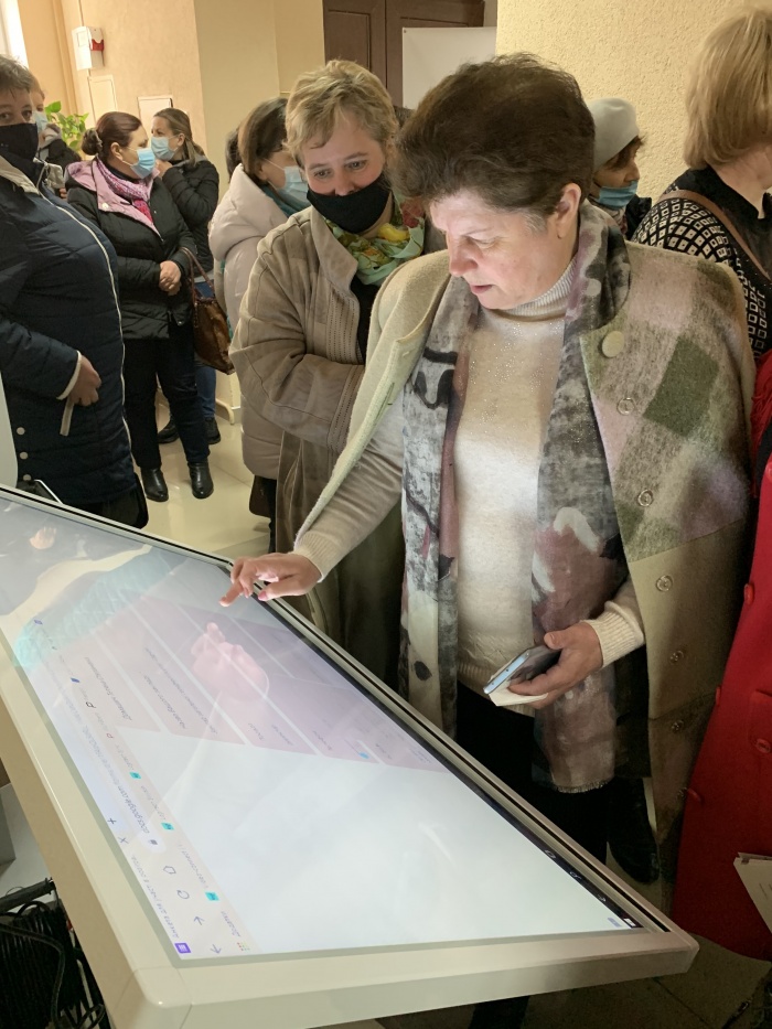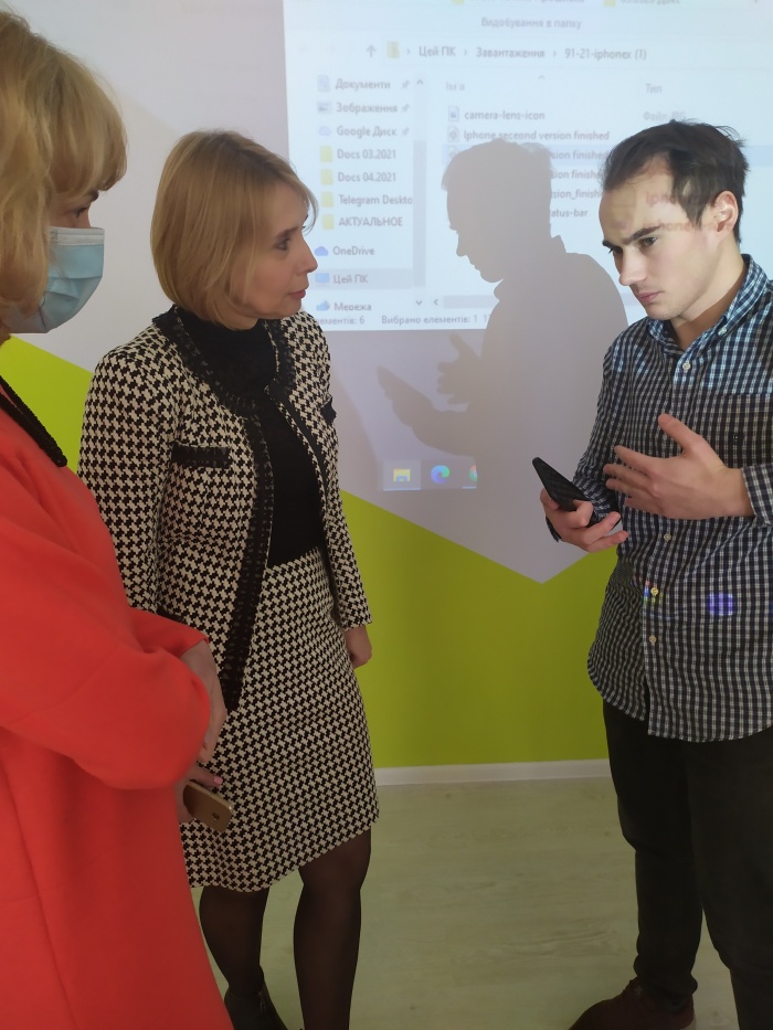 Максим Анатолійович Задніпренко із команди стартапу «CamTouch» демонстрував сенсорний екран — пристрій, що дозволяє перетворити будь-який проєктор чи монітор на інтерактивну дошку, якою можна керувати за допомогою спеціальних стилусів.