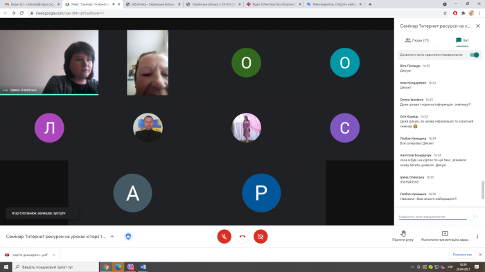 Педагогам були надані корисні посилання на методичні вказівки щодо викладання суспільних дисциплін, посилання на готові завдання й зразки створення власних завдань на уроках історії та правознавства.