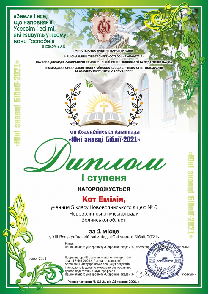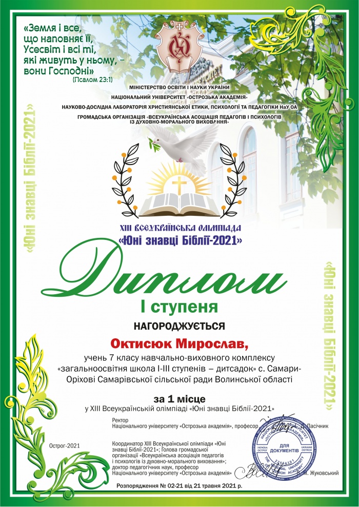 Вітаємо команду волинян, яка достойно представила область на ХІІІ Всеукраїнській олімпіаді «Юні знавці Біблії»! Щиро дякую нашим талановитим учням, педагогам, та батькам! Слова вдячності натхненнику ‒ Василю Миколайовичу Жуковському, координатору XIІІ Всеукраїнської олімпіади «Юні знавці Біблії — 2021», доктору педагогічних наук, професору НУ «Острозька академія», голові громадської організації «Всеукраїнська асоціація педагогів і психологів із духовно-морального виховання», і шановній Світлані Борисівні Власовій, старшому співробітнику науково-дослідної лабораторії християнської етики, психології та педагогіки НУ «Острозька академія» за професійність і створену атмосферу й колегам ‒ членам фахового журі!