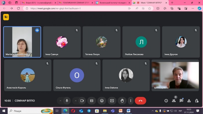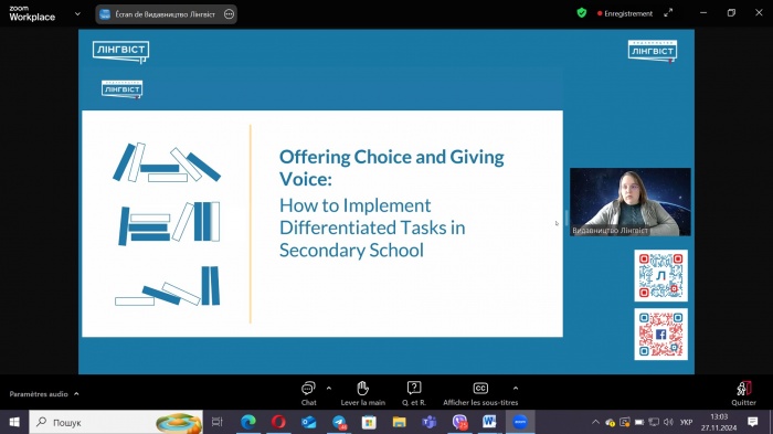 Попри складні умови в енергетичній системі та масові обстріли 27 листопада 2024 згідно з Планом роботи Волинського ІППО під час вебінару вчителі-іншомовники обговорили виклики та практики навчання іноземних мов у 5-7-х класах Нової української школи, шляхи формування комунікативної компетентності учнів відповідно до груп результатів, інструменти оцінювання та рефлексії на уроках іноземної мови.