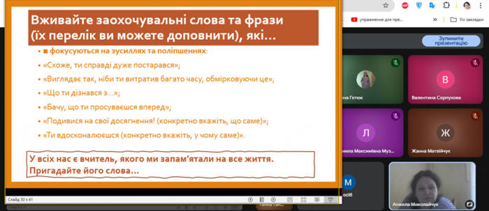 Сподіваємося, що отримані знання та практичні інструменти допоможуть педагогічним працівникам у щоденній роботі зі створення позитивного та підтримуючого середовища в інклюзивних класах.