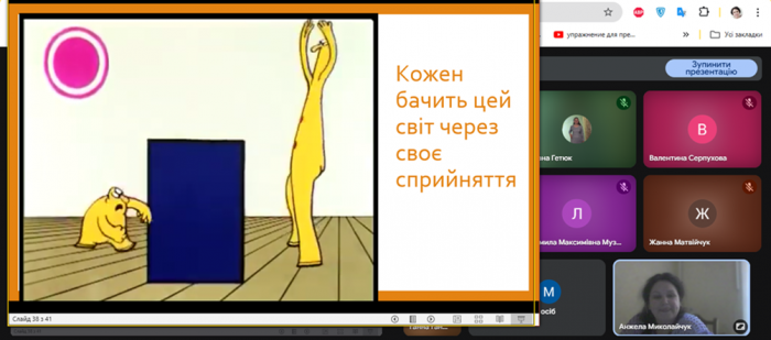Учасники мали можливість не лише поглибити свої знання про ресурси формування партнерської взаємодії, зокрема, засоби альтернативної і додаткової комунікації та метод ненасильницького спілкування, але й попрактикувати навички самоусвідомленості та вдячності.
