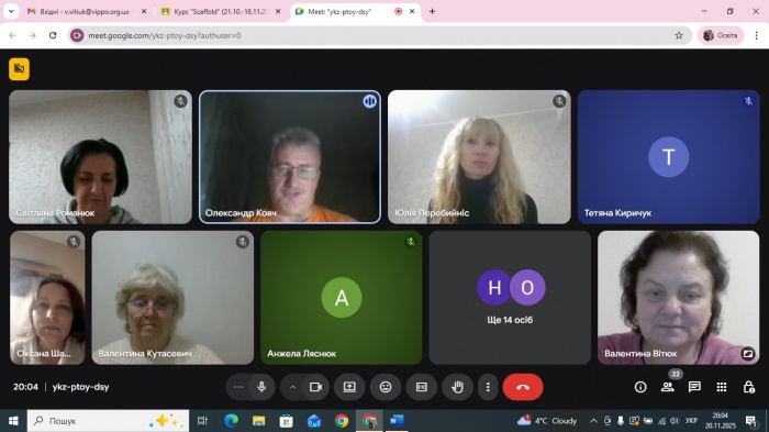 У співпраці з Проєктним офісом впровадження Нової української школи Міністерства освіти і науки України, спільно з Європейським фондом освіти з 21.10 по 16.11.2025 року проведено підвищення кваліфікації педагогічних працівників: пілотних (9-х) класів, які беруть участь у реалізації Державного стандарту профільної середньої освіти у 2025/2026 навчальному році, в пілотних (10-х) класів з курсу «Scaffold: як інтегрувати ключові компетентності в освітню практику».
