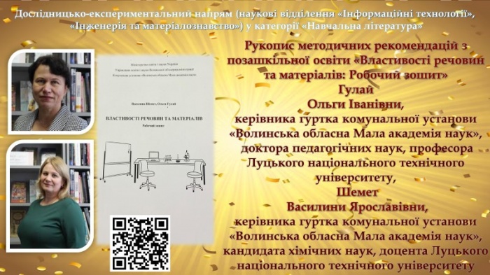 Відповідно до рішення експертної комісії конкурсу та наказу МОН України «Про затвердження результатів проведення Всеукраїнського конкурсу рукописів навчальної літератури для позашкільних навчальних закладів системи освіти у 2025 році» від 06.02.2026 № 194 відзначено 7 рукописів, які були представлені на ІІ етапі Всеукраїнського конкурсу.