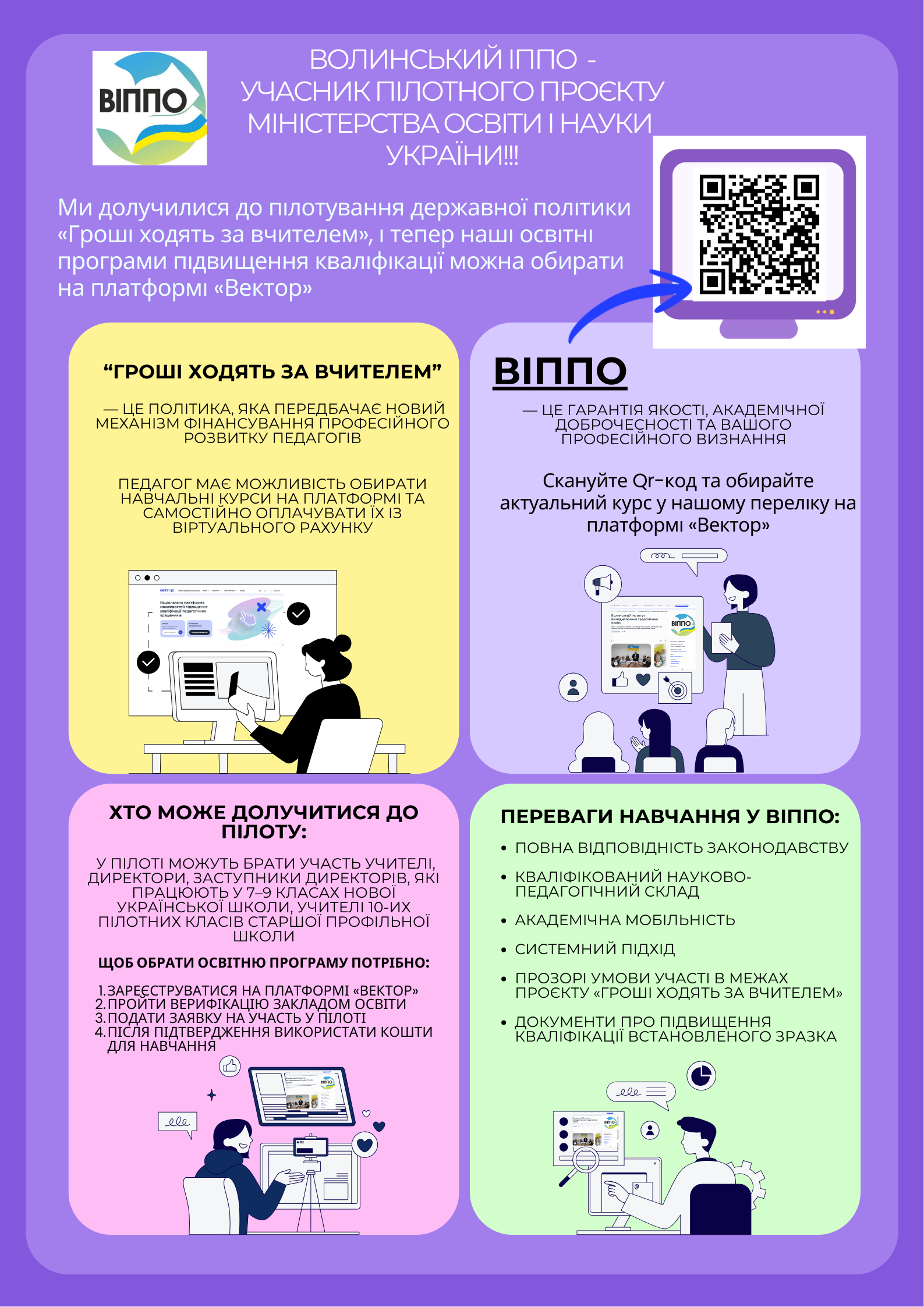 Волинський інститут післядипломної педагогічної освіти долучився до пілотування державної політики «Гроші ходять за вчителем» |