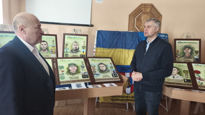 В’ячеслав Рубльов подякував кожному вчителю, чий внесок став частиною цієї великої допомоги, говорив про волонтерство, війну та про тих учителів, які добровільно стали на захист Вітчизни. Адже саме цей день став особливим - у бібліотеці Інституту офіційно розпочала роботу унікальна виставка: це 35 портретів захисників із Торчинської громади, створених художницею та працівницею місцевого музею Ніною Фесенко.