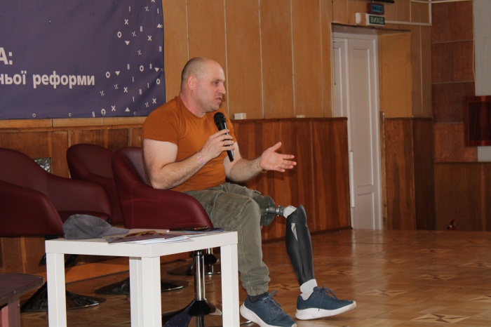 Центральною частиною заходу став виступ воїна Олександра, який поділився особистою історією бойового шляху та досвідом життя після ампутації. Він розказав, що перший досвід у такому становищі - на вулиці, у магазинах - був негативним. Однак згодом ставлення до таких людей дещо змінилося: з’явилися пандуси, спеціальні туалети, стоянки для відповідного транспорту, перехожі стали дякувати за захист Батьківщини, пропонувати допомогу в прийнятній формі. Проте до повної безбар’єрності - в усіх розуміннях цього слова - ще далеко.